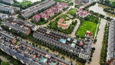 Hoàn lưu bão số 3 gây mưa ở Hà Nội khiến khu đô thị Geleximco (xã An Khánh, Hoài Đức, Hà Nội) do Tập đoàn Geleximco làm chủ đầu tư ngập sâu trong ‘biển’ nước trong hai ngày cuối tuần vừa qua. Nhiều người dân bơi thuyền “dạo” quanh khu đô thị. Nước ngập sâu,