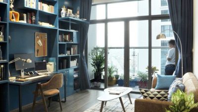 Căn hộ trên tầng cao đủ sức hút mọi ánh nhìn ngay từ lần đầu tiên không chỉ nhờ những ô cửa sổ rộng mở, đón nhận ánh sáng ngập tràn từ bên ngoài vào mà còn nhờ cách sử dụng gam màu táo bạo, màu xanh biển làm điểm nhấn tạo chiều sâu cùng
