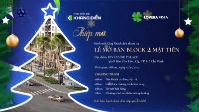 ĐỪNG BỎ LỠ SỰ KIỆN MỞ BÁN CÁC BLOCK 2 MẶT TIỀN LOVERA VISTA 22.12.2019 Cơ hội sở hữu căn hộ lý tưởng tại khu Nam TP.HCM giá chỉ từ 28 triệu/m2 (Giá tim tường, chưa VAT): 🌟 Địa điểm: Trung tâm Hội nghị Riverside Palace, 360D Bến Vân Đồn, Phường 1, Quận 4, Hồ
