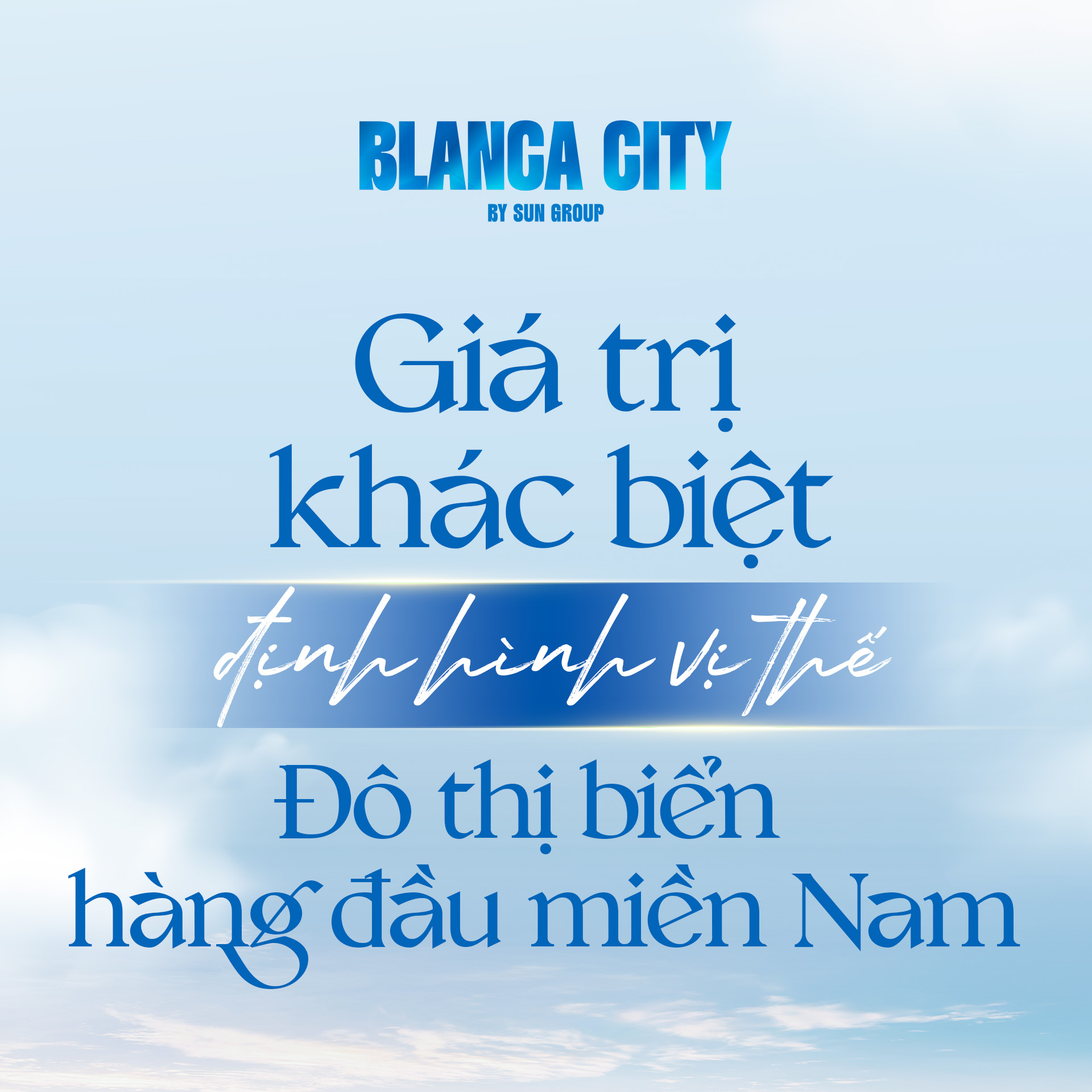 💠 Blanca City – Đô thị biển biểu tượng được kiến tạo từ những giá trị khác biệt, mở ra tọa độ an cư lý tưởng, không gian nghỉ dưỡng đẳng cấp và cơ hội đầu tư bền vững cho tương lai.